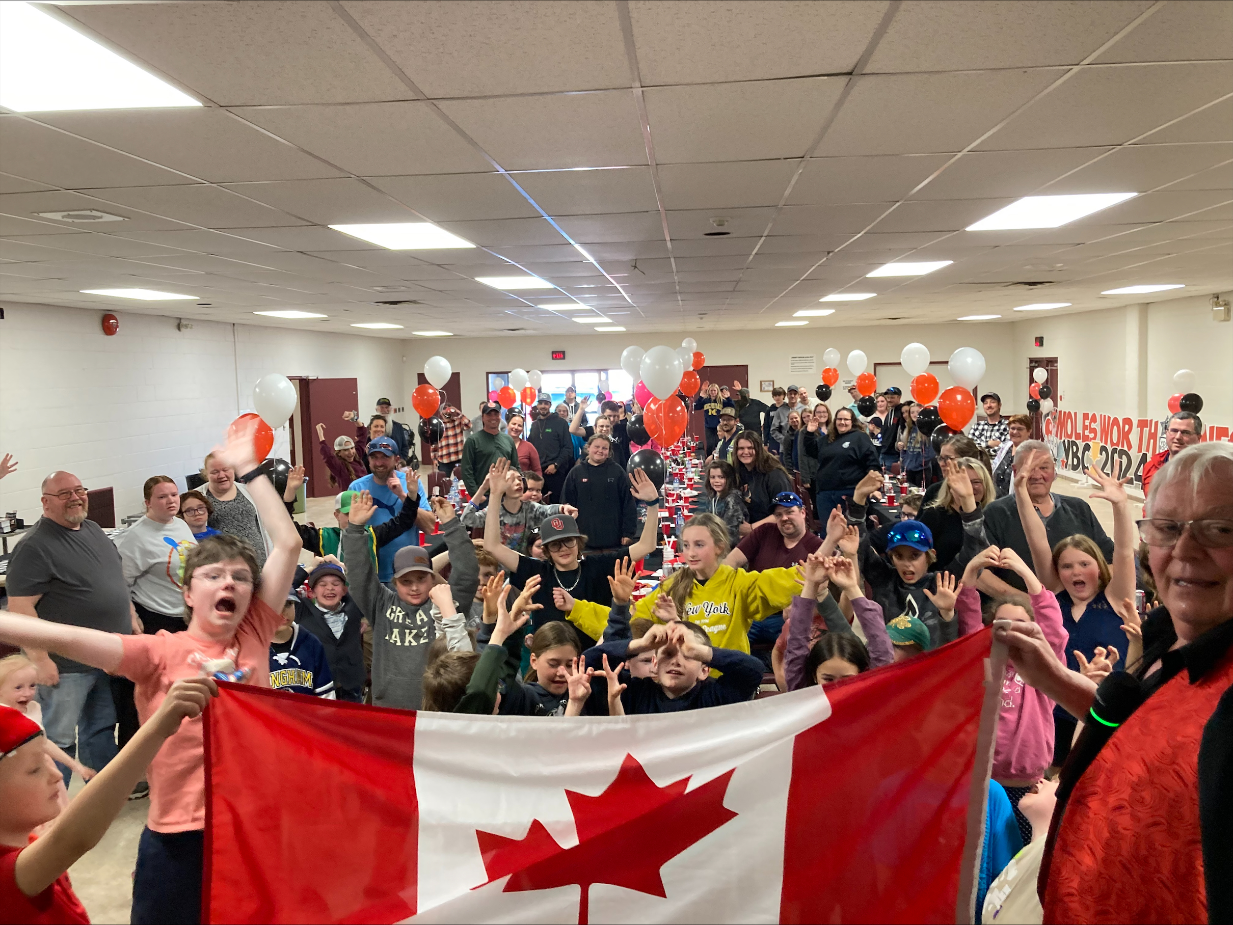 Next with the help of two young audience members we take a flashy and funny, educational tour across Canada (from past to present) concluding with a stage filling, magical production of our Canadian Flag. Again another WOW!